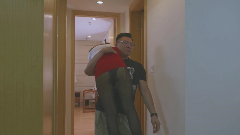 陈松找将全身不能动,也不能说话的王娜用丝袜套住头,就扛着出门了。