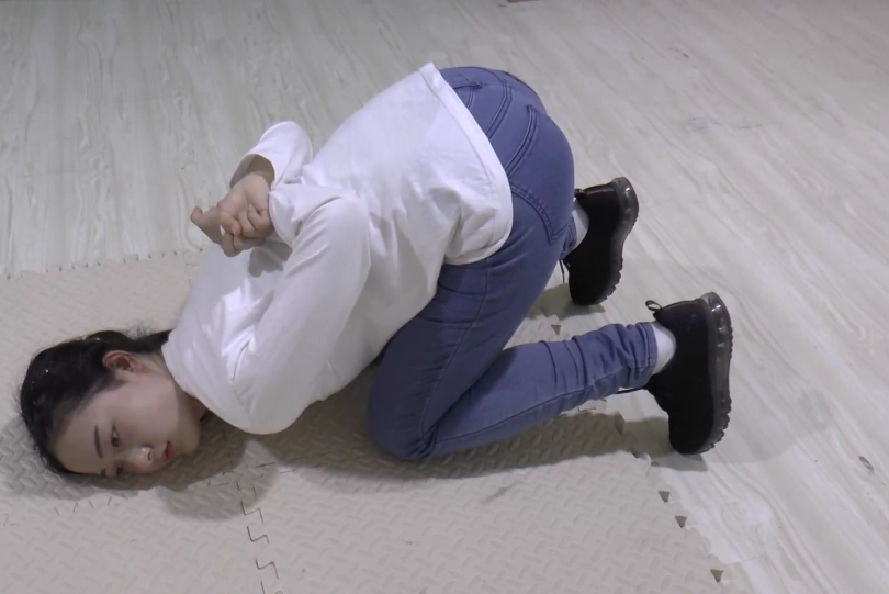 小美女琪琪。两套衣服,白色T恤,运动鞋,牛仔裤。复古花旗袍。尽显模特丰满好身材。模特柔韧性也不错。表现挺好。