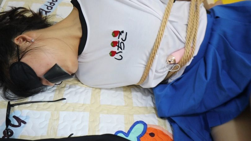 女孩也从睡梦中醒来了,开始疯狂的挣扎但是嘴巴里面塞着袜子,也喊不出来,只能发出呜呜呜呜的声音来以示反抗,很快就被绑好了,连着膝盖和脚腕都被狠狠的绑了起来,看着身边被紧紧捆起来的女孩子,开始把魔抓伸向这个女孩