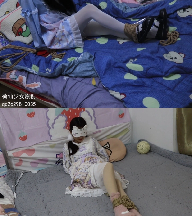这是唯一的一部,菲然与洛羽绑在一起调教的作品,洛羽从来没有接触过男生(是真纯),又很怕痒,所以被鞭打tk震动划过腿反应是自然反应,非常的激烈,呜呜叫的时候带着哭腔,(菲然也被感染了,也开始大声哭喊)洛羽脚被摸的时候,[不可描述]划过的时候吓得都要哭了(真哭),菲然也是在一旁敏感的叫,鞭打的不痛,很轻 但是两个女孩子即使嘴巴被口球和袜子塞满,还是一直在叫,期间被各种玩弄,直到两个女孩子被允许解开