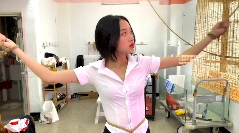 第二集:素素练习隔空取物魔术给老板看,老板很满意之后要求素素继续练习逃脱魔术,但是老板满意按照之前的绑法,多加了很多tj工具,导致素素练习中达到了gc