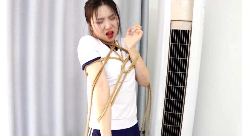 性感的白丝日式体操服美人收拾家里,意外打翻箱子里面的绳子散落在身上,美女越挣扎结果绳子反而捆绑的越来越紧,最后居然自己将自己牢牢捆绑了。