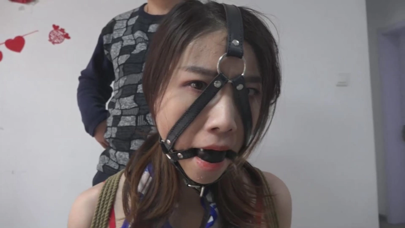 被迫换上旗袍,跪缚于镜头前,怒火只能化为愤恨的眼神和呜呜声!