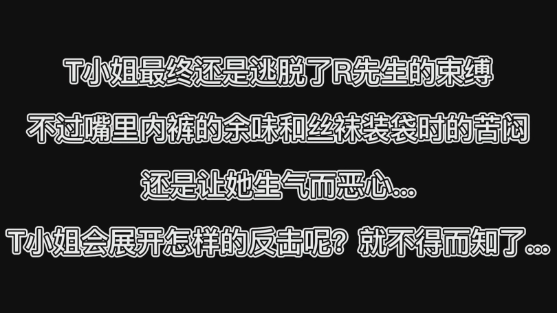 不过T小姐也不是一般人,但是这次难忘的经历应该会让她对R先生产生浓浓的敌意和忌惮!