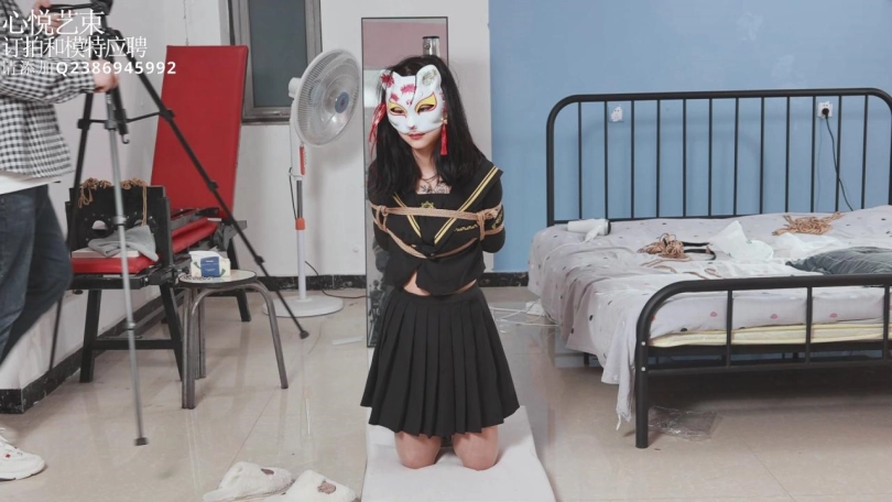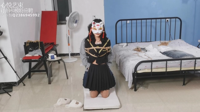 【心悦艺束】肉丝可爱小狐狸被日式后高手束缚在铁柱子上面,吊起双脚挠脚心,腋下,腰部。小家伙是真的很怕痒啊hiahiahia