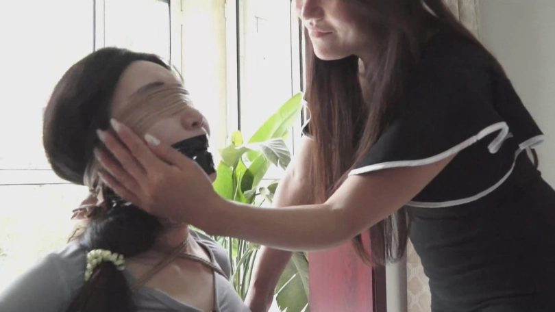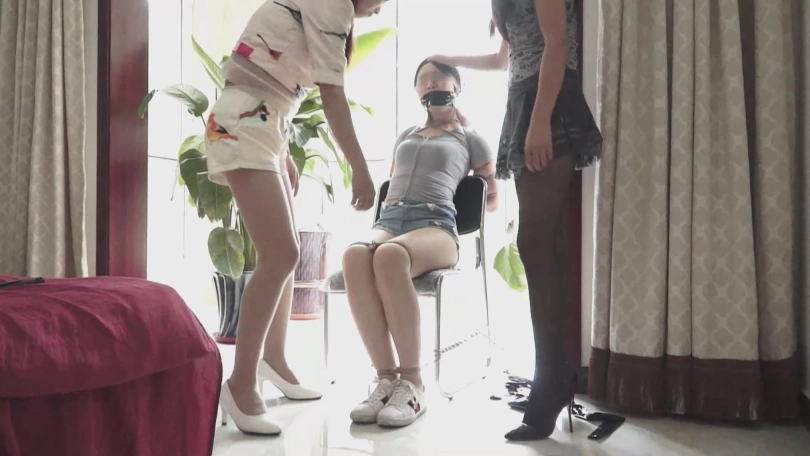 (曹凤打开门,看到了被五花大绑在椅子上,还被堵嘴蒙眼的刘倩,短暂的慌乱之后,她拿出电话正准备报警,这时她也认出了这被严严实实捆绑的不是别人,就是自己丈夫在外面的情人刘倩,报警还是不报天使还是魔鬼?她陷入了抉择,想到自己的丈夫的精力成天在这个女人身上,最后一咬牙她放下了手机!走向了这个已经经历了一次劫难的女人,而此时的刘倩也感觉到了来人,正呜呜呜呜的请求帮助!)