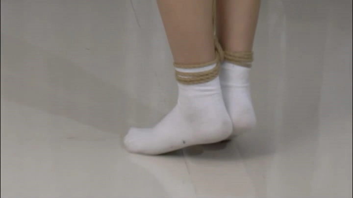 揭开雯莉的镣铐,开始捆绑雯莉的脚。