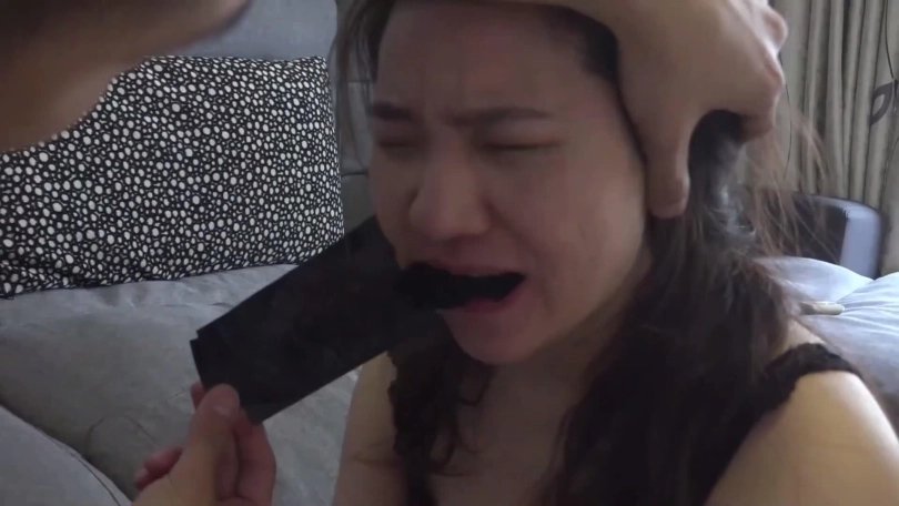 内容:(一)得罪同事童晓萌的美女甜甜和其丈夫均被严厉捆堵,经过一番挣扎,二人挣脱束缚撕掉嘴外自粘绷带与黑色胶带,分别拽出口中塞的原味脏黑色连裤丝袜与白色棉袜大口喘气。