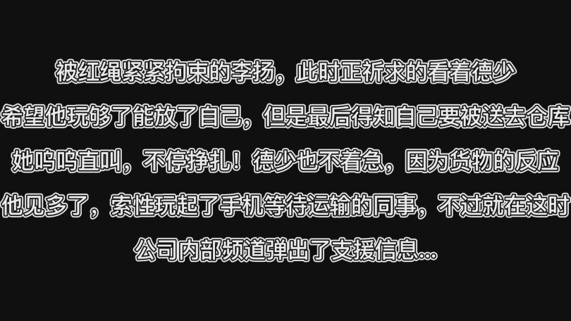 独居的OL李扬,看着昏迷的李扬,德少拿起绳子打包起来...