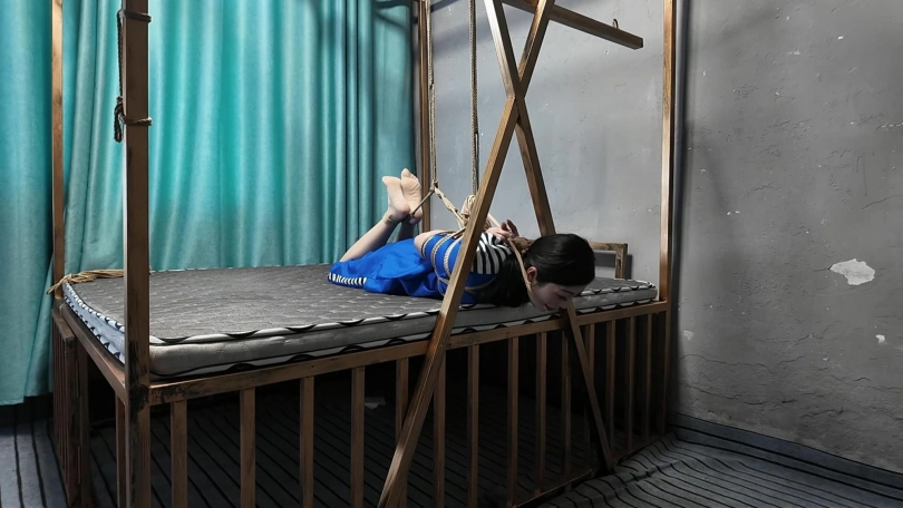 女犯李佳佳被各种刑法审讯,大字捆绑,后手吊,老虎凳,后手观音驷马放置,最后关笼子