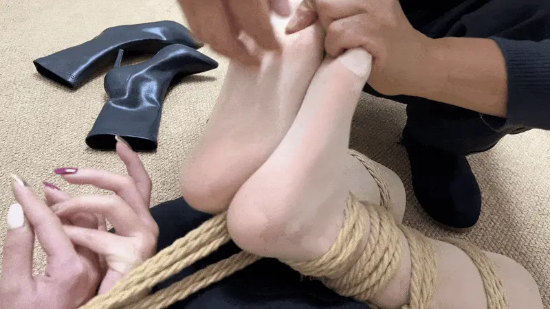 功夫了得的保镖女侠思楠反抗未果被赏了直臂并肘+折腿缚,尽管如此不屈的她仍在青蛙一般弹动双腿,更是刺激歹徒将她脚踝并拢绑了个超紧驷马,而平时威风霸气的老总小雨此时只能在椅子上无助地呜咽……当然我们的坏银不会忘记她,毕竟机密的钥匙总在领导手里,谁知一番摸索过后小雨仍不可就范,于是老谋深算的大哥算准了她的软肋,一边挠着小保镖粉嫩的脚丫,一边解下皮带让小弟抽打不屈的思楠,自己则打算给小雨演示一堂生理卫生课……一旁的办公桌上《刺激的加班夜》仍在播放,似乎预示着两位美女将会度过一个永生难忘的夜晚。
