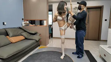 晓琴被从笼子里面牵出来,后手捆绑,被铁链子拴到架子上,吊到客厅挠痒,鞭打,强制按摩,玩过之后又被带走囚禁