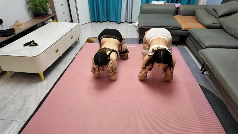 晓琴和贝贝两个小闺蜜都是非常喜欢K9,两个人身材还是非常好的,一黑一白内衣吊带袜,非常好看,今天特意把她们绑起来溜溜,她们又都特别怕痒,挠痒还是吊起来挠更好玩,既然都喜欢,耳光,鞭打少不了,玩过之后关到笼子里面好好呆着..