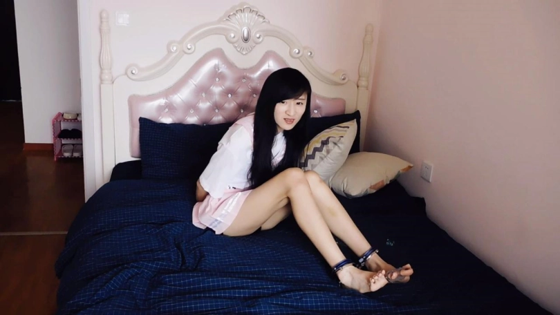 妹子想偷偷出去玩,做好趾甲穿好鞋袜,悄悄走到门口,因为不想被哥哥发现,悄悄的有点心虚。然而还是被哥哥发现了,不让妹子出去,要求赤脚完成一项挑战才可以出去。哥哥要求妹子在门口那里脱掉鞋袜,赤脚走过来,脱的过程慢一些 ,显得很害羞。挑战是在10分钟内把玻璃球从一处移动到另一处,带着脚铐,只能用脚来。先给妹子戴上脚镣,开始挑战。觉得难度不够,给妹子加上脚铐、脚趾铐,继续挑战。妹子挑战失败,被哥哥惩罚,挠脚心。哥哥放下妹子,自己走了,妹子带着镣铐挣扎。