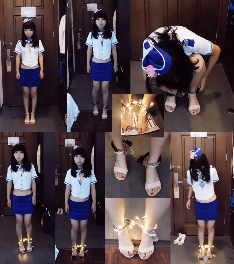 关键词:礼仪小姐彩云 偷懒遭镣铐惩罚 手铐 脚铐 脚趾铐 空姐服 高跟鞋