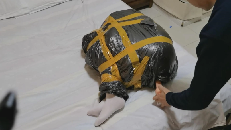 2、塑料袋包裹的不是很紧,但是很柔软也能勾勒出身形轮廓,性感的一批。
