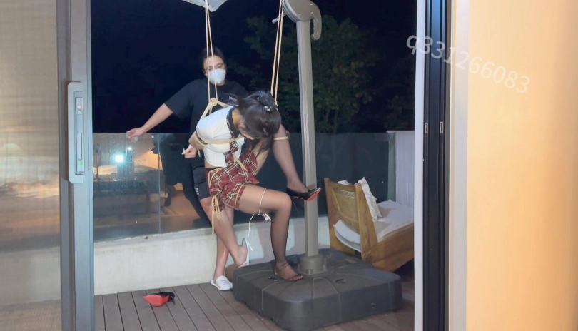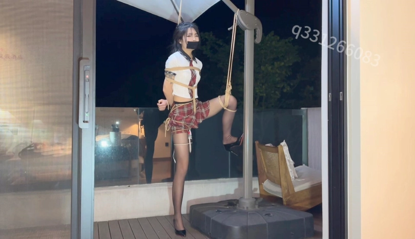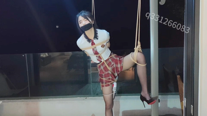 睡了几个小时的坏人醒来才突然想起,阳台还捆着一位如花似玉的美少女,,,于是兴致又上来了。。跑到车里拿来了早就已经准备好的jk,强制性的给她把衣服从新换上,接下来就是惨不忍睹的吊缚,开腿缚,坐缚,,,,永无止尽的强高,,,喉咙玩耍,还有最后的火力全开!!!