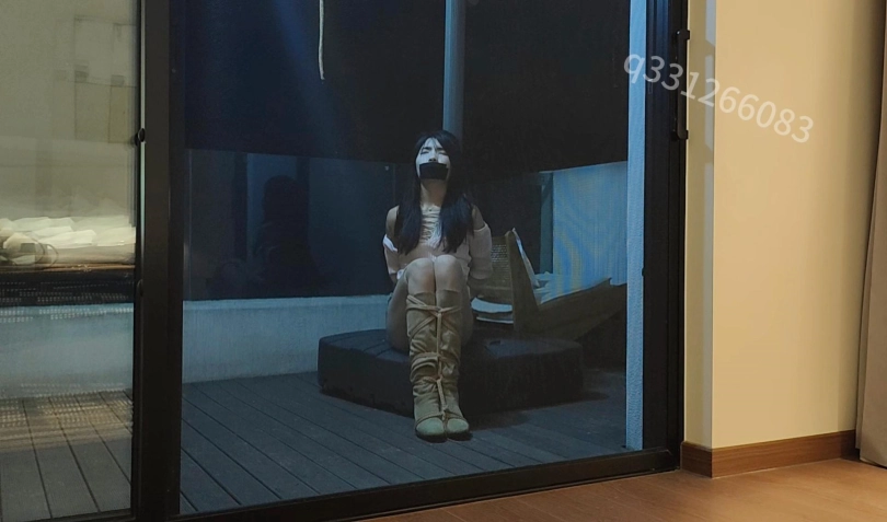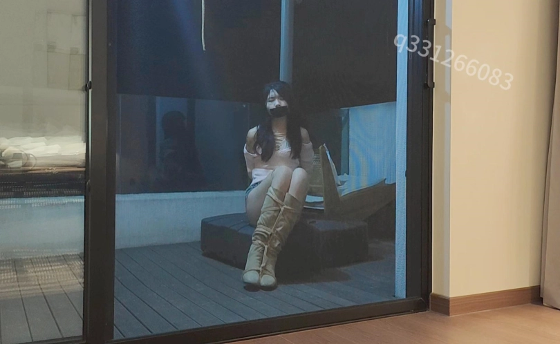 一个农家乐的阳台上,又有谁知道这里居然绑着一个如花似玉的小姑娘,她在阳台也不知被绑了多久,挣扎了多久,不停的往阳台外面看,希望有人来救她,由于嘴里被塞了丝袜,外面又是强力肌肉胶布,所以只能发出微微的呜呜声,过了好久好久,绑架她的坏人终于回来了,打开了电动窗帘,准备对她,最后小姑娘趁坏人睡着还差点让她逃跑了,不过还是晚了一步!!