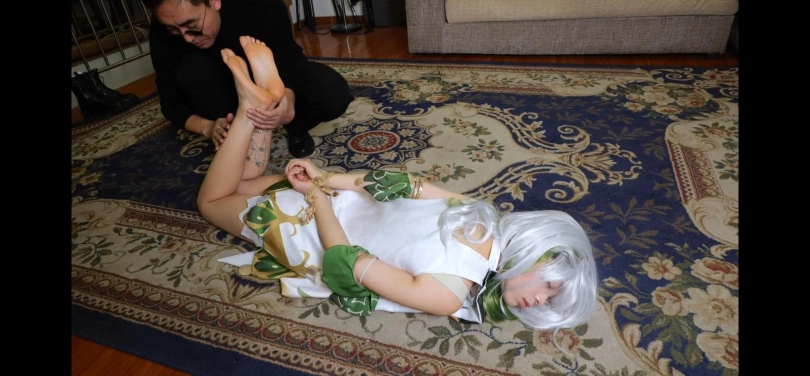 cosplay原神角色的美女被弄晕后玩脚捆绑玩弄,各种羞耻姿势让人欲罢不能。