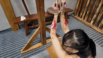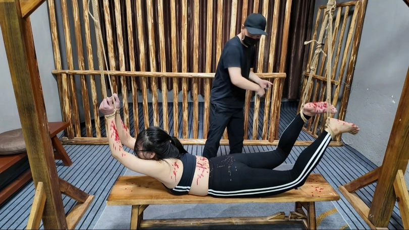 把小遥绑到笼子里面,脚控制外面绑好,滴蜡,用鞭子在把蜡烛抽掉,用皮鞭打,挠脚心,用板子打,用牙签扎,在反绑到凳子上继续皮鞭打屁股,最后用棒棒....最后拉回浴室给用刷子洗干净,下一部换着花样接着虐....