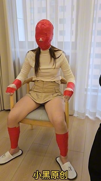 查看完整版本: 【小黑】胶带椅子拘束逃脱挑战,胶带全包头,保鲜膜再缠上,她疯狂挣扎,我依然不给她解开,最后惩罚是打开门给她放门口。