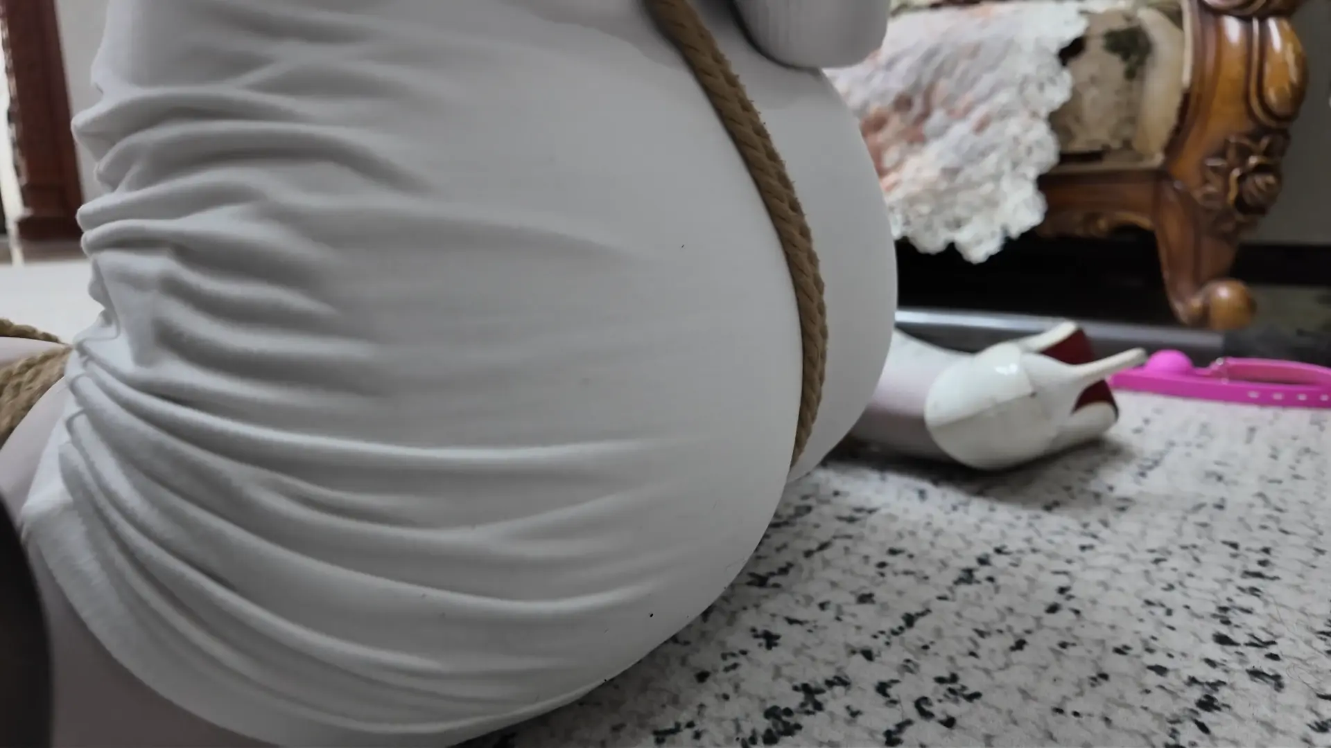 两人只能难受的稍稍垫脚来回踱步,减轻痛苦,
