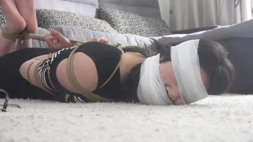 雌雄大盗将晓璐的眼睛用胶带与绷带缠绕封死,带着财物心满意足离开,留下晓璐呜呜呜在黑暗中闷哼挣扎着。