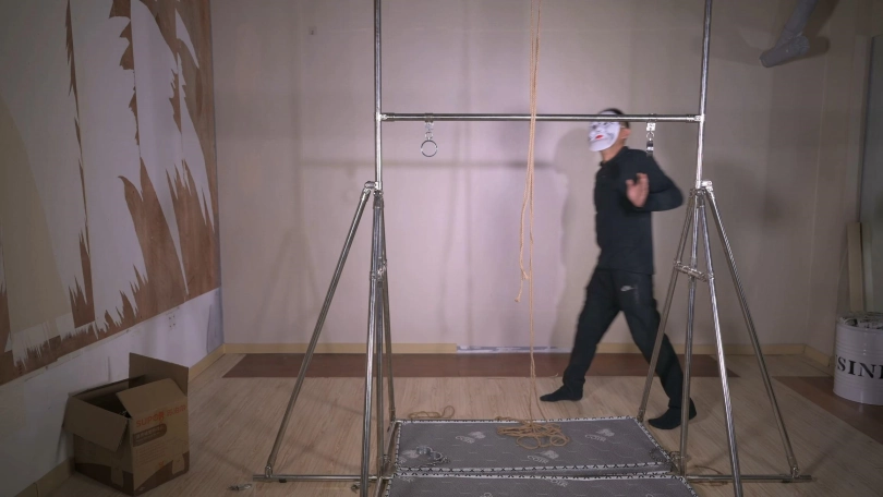 长腿清纯小妹初次体验铁架镣铐,可能是链子留的太短了,有点硌手,但能让她最大伸展。然后让她去铐姐姐,就是这个决定埋下了她们逃脱的隐患,她学会了这种铐子的解锁方法,铐的过程中弄掉了一把小钥匙,这是第二个隐患,当我把小妹双手吊绑的架子上的时候,我竟然系了一个活扣。当我捆好后,去抽了根烟,准备回来欣赏欣赏,让她们在架子上好好待一会的时候,出现了搞笑的一幕。
