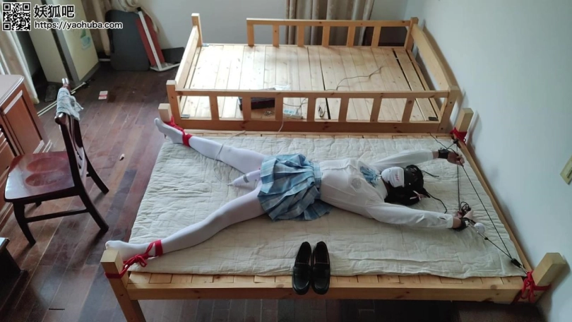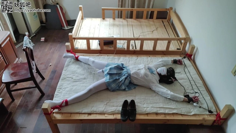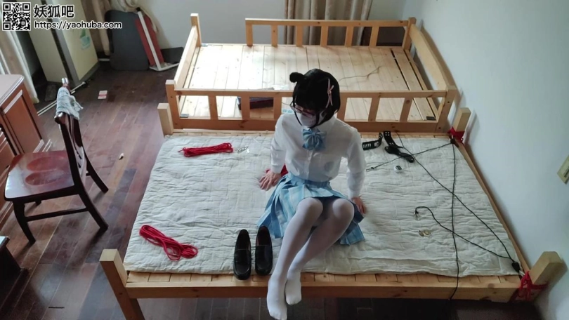 终于又可以偷空悄咪咪录自缚啦,这回是白丝jk!床上大字定时自缚!用了棒棒~