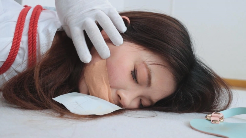 采用了拘束衣+足枷的新式玩法,足枷这个东西还蛮贵的,而且老哥用的时候还用反了,但并不影响整体效果,我用了很多道具,包括按摩油,经络刷,金属痒痒挠、金属滚轮和电动牙刷子之类的,雅倩的大脚板估计得将近40码了,TK起来非常过瘾,而且反应也颇为可爱,后来又给她戴上了口球,呻吟声更加诱人,新年期间,看点这样“欢乐”的作品我觉得还是蛮不错的。