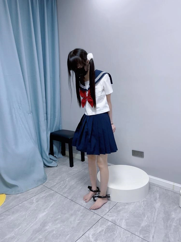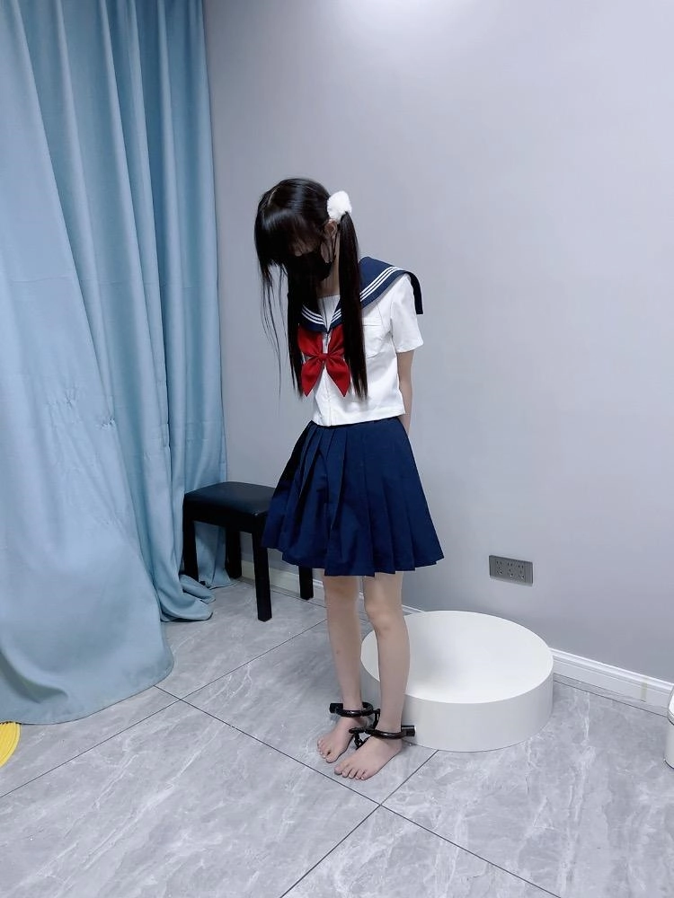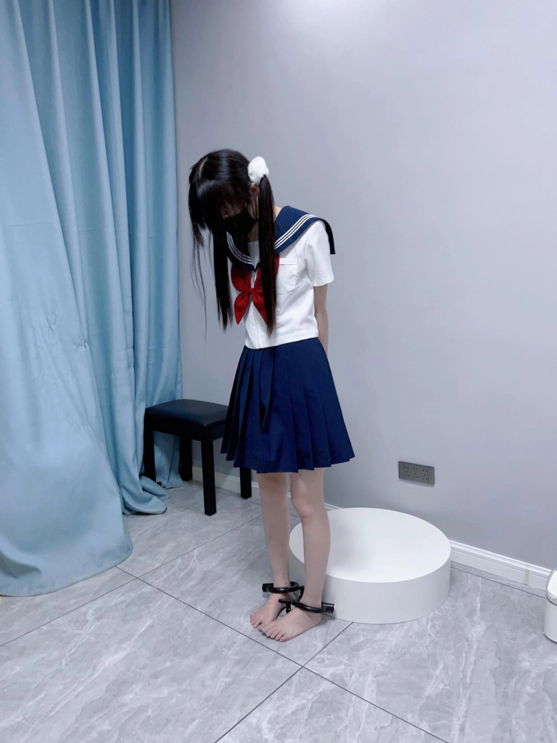 【咕咕精】双马尾jk茶茶裸足自愿女囚体验-裸足镣铐展示、指令罚站罚跪训诫、踮脚尖罚站、戴镣走路(封死钥匙孔)