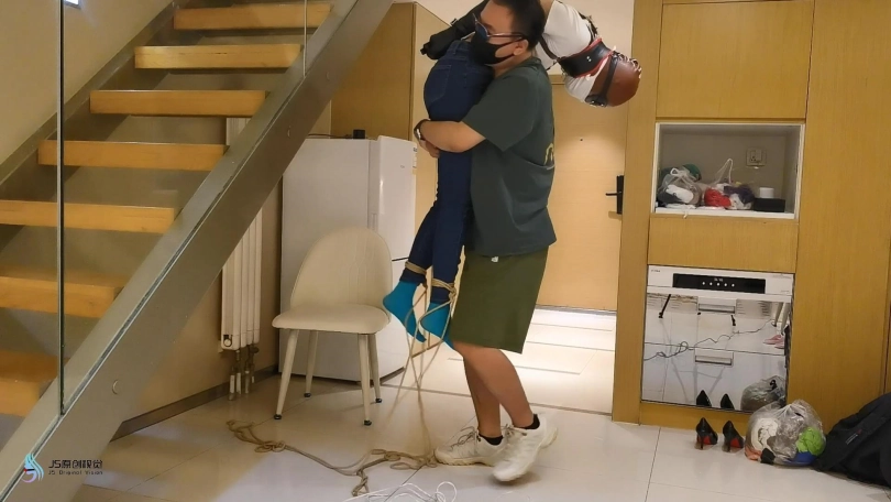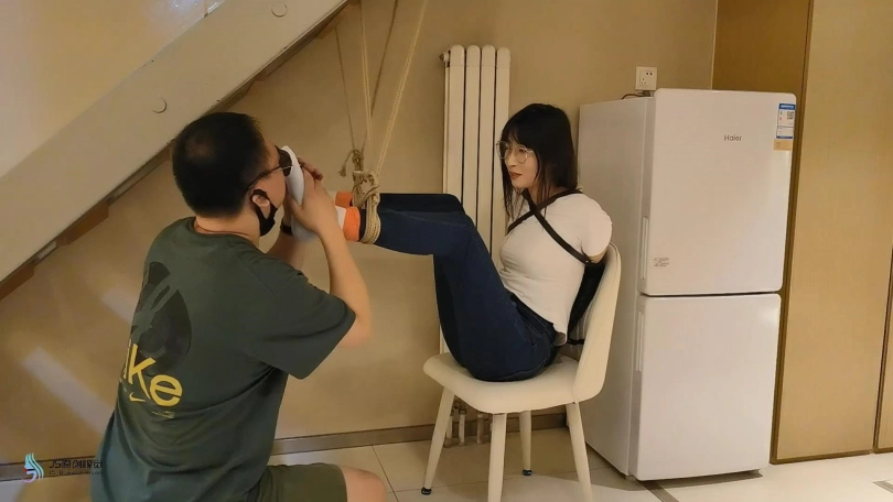 女医生坐在椅子上,她的手被单手套束缚着,她的双脚被吊着绑着。患者亲吻着医生的棉袜脚,脱下她的棉袜发现里面居然还穿着一双彩色连裤袜。刚脱下来的棉袜塞进医生的嘴里,头上套上丝袜头套,胶带缠绕嘴部,防止医生吐出嘴里的原味棉袜。再给她戴上一个皮质头套,只露出眼睛和鼻子部分。拿起女医生的另外一只棉袜放在她的鼻子初,外面用口罩蒙上固定住袜子,这样每次呼吸,女医生都能闻到自己穿过的棉袜味道。脖子上戴上脖套,这让她无法低头。她的眼睛也被蒙上。患者拿出一个电动TD放进医生的裆部刺激着。然后贪婪的亲吻着女医生的彩色丝袜脚。又用棒棒刺激着女医生的裆部。无法动弹的医生开始抽搐呻吟。最后玩够的患者将女医生扛起离开。。。