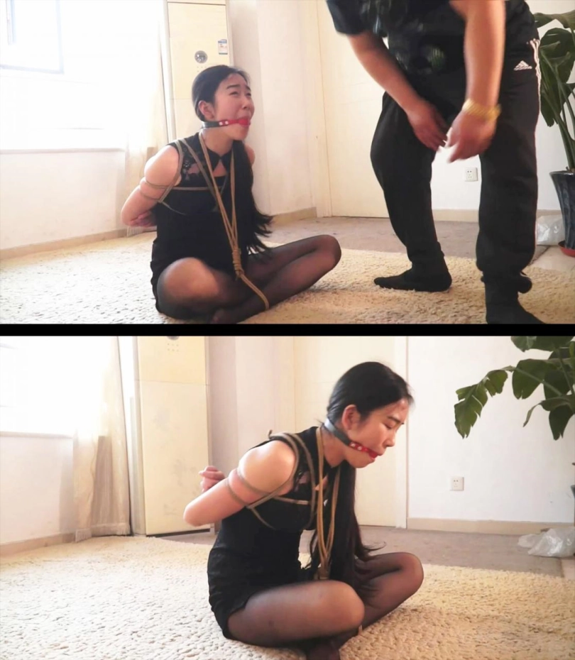 【逍遥】《美女卧底折磨03》黑丝美女盘腿团缚 绳子会自动收紧 口球现场滴口水