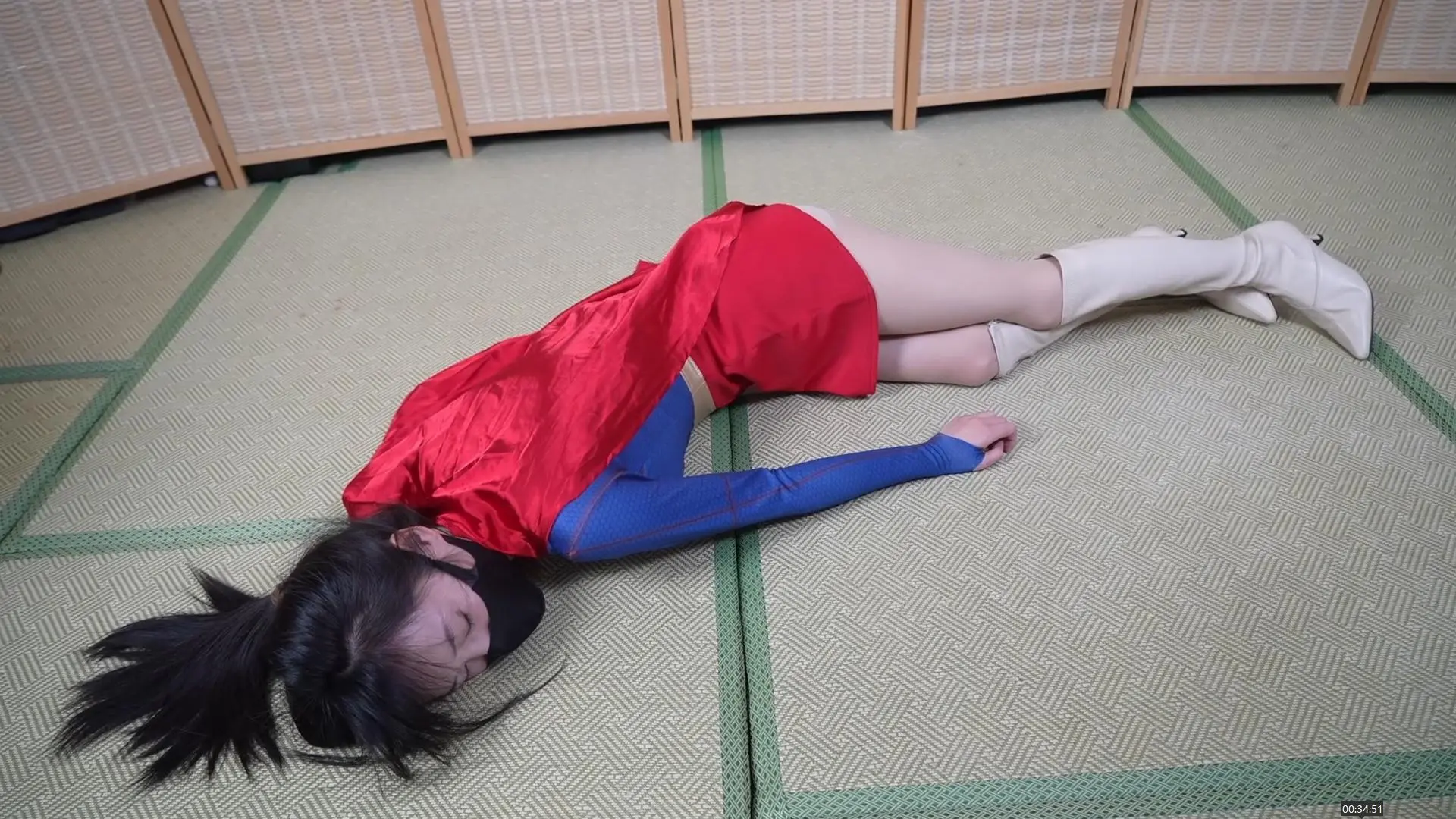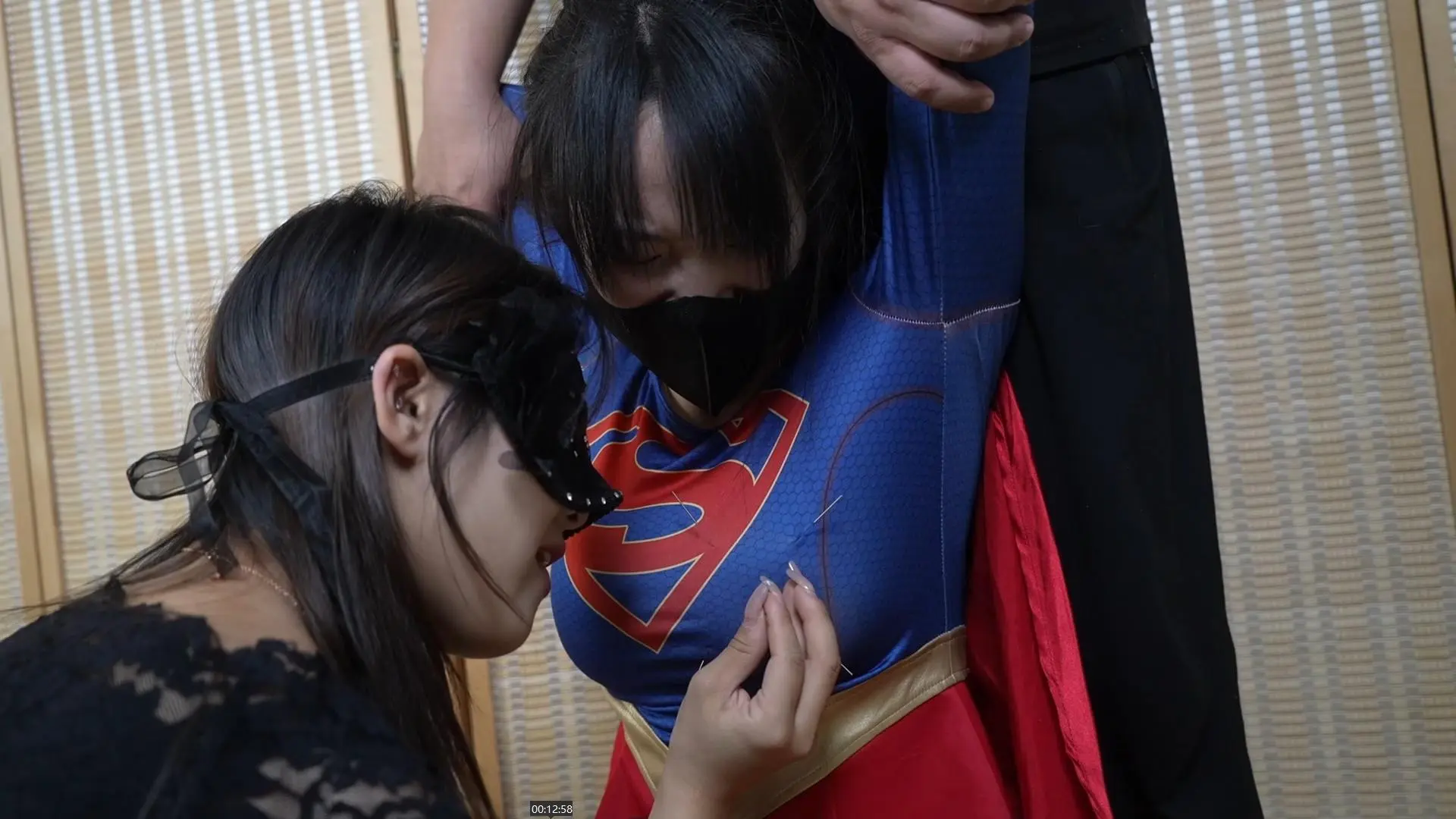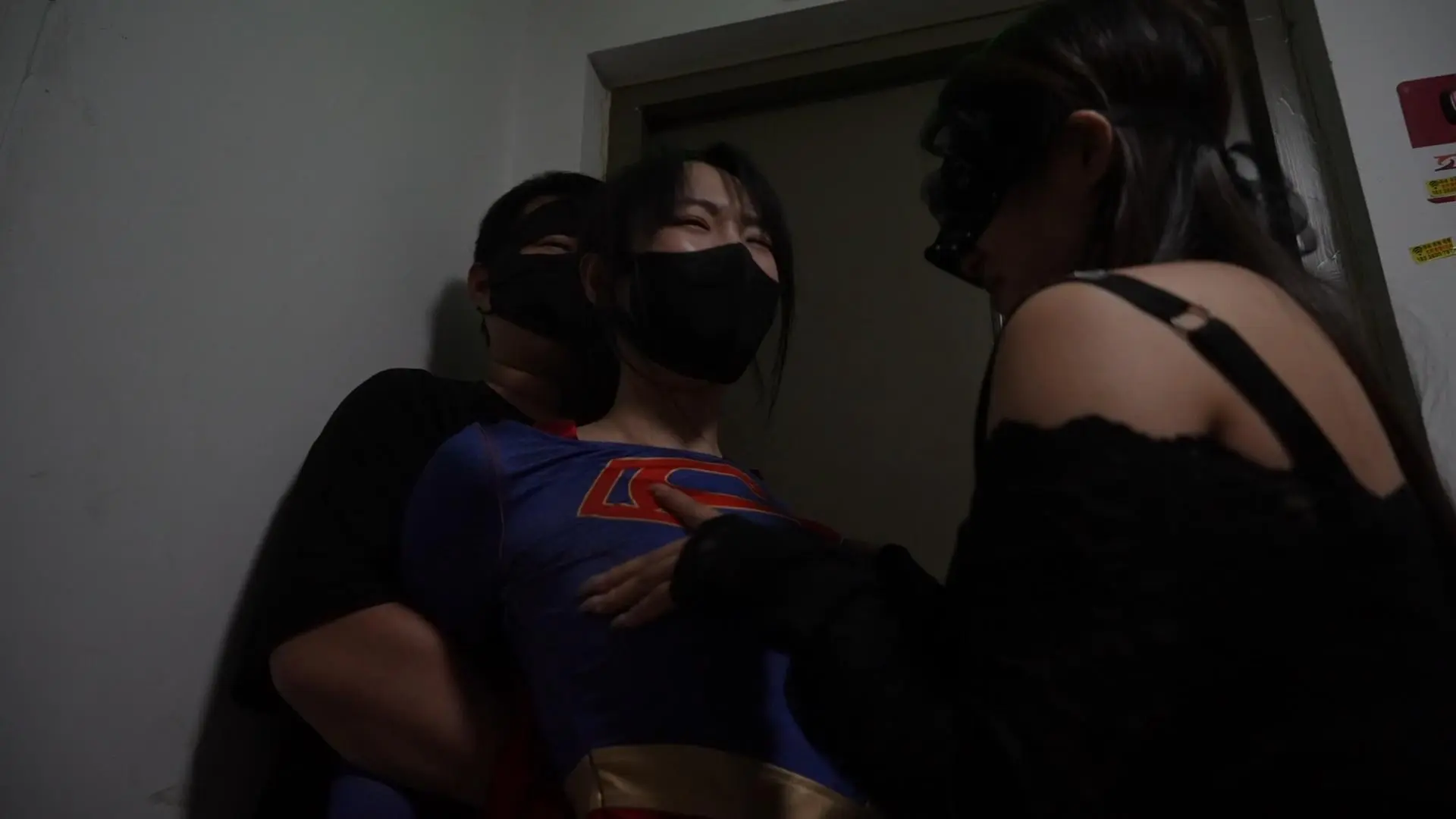 蒙面男子与恶魔沉沉终于在楼道内击败了女超人嗷嗷,沉沉对嗷嗷的身体已经垂涎三尺