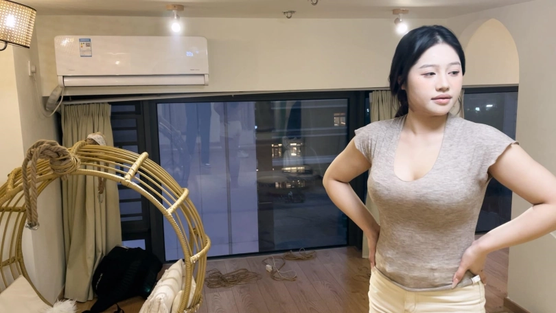 新模特,是个健身私教,身材非常棒一对大雷呼之欲出。把她日式紧缚然后强制弯腰固定住跪在地上,前后都有绳子固定模特是一动都动不了,再带上大号5cm口球,流了一地的口水。