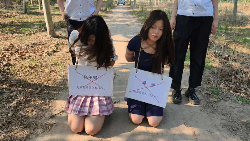 【忘忧社】D女姐妹花(下)新模特露露首次出演,贩D女两姐妹在户外交易的时候被抓捕,砸死镣死铐,户外指认现场,户外枪决,两名死囚犯一起上路。