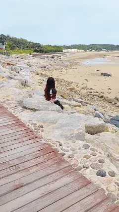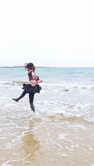 一屁股坐在海水上,不知道是什么样的奇妙感觉,后来又冒着危险走到礁石上,好在有惊无险,没有摔倒。