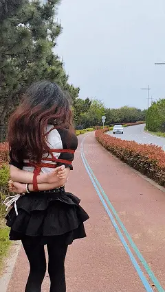 之后露露捆绑着在路边晒干湿湿的脚和袜子,被不知名路人拍到(X)后跟踪上了山,请求拍摄者的解缚