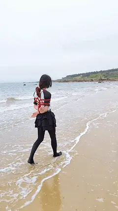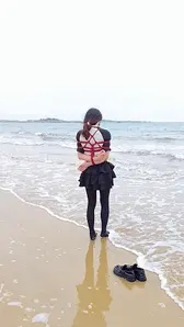 甜蜜的海边捆绑之旅,露露来到了海边想体验一下海边被捆绑的感觉,于是穿上厚裤袜和短裙小皮鞋去踩水了~