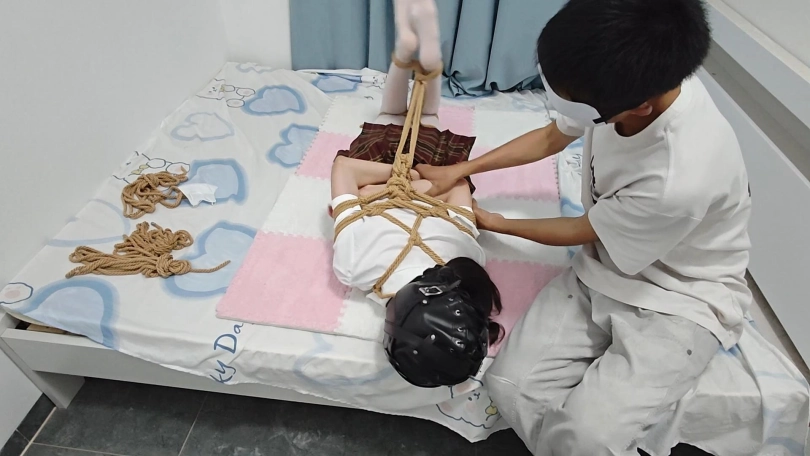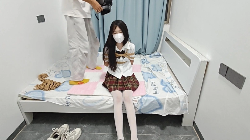 新模特来了,好瘦腿好长的大妹子,是个话唠,也是个可爱的jk妹,接受度还可以,首映来了,被绑起来解绑,戴上头套差点呼吸不过来了,挠痒tk,反应还不错哦。