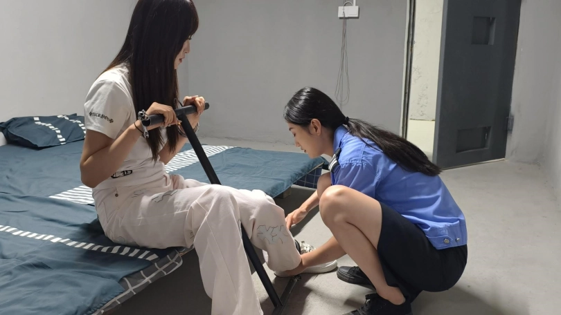 随后,学姐安排主角参与了一次抓捕逃犯的行动,主角在行动中与学姐一起将逃犯制服并带回审讯。在审讯过程中,主角体验了作为犯人的感受,被要求保持特定的姿势和位置进行反思。
