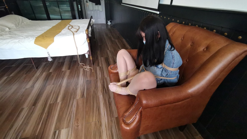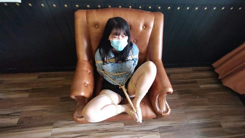 把琳洛在沙发椅上捆绑好,双脚也被捆上连着腰部。在她的下面塞进去一个嗨皮蛋刺激着她,但没过一会琳洛说了一句让我很惊讶的话:“震的地方不对,没感觉,你在往下点”。这丫头越来越上道了。。。