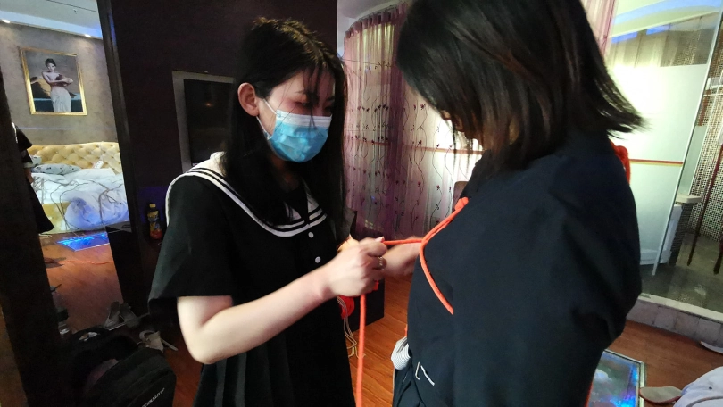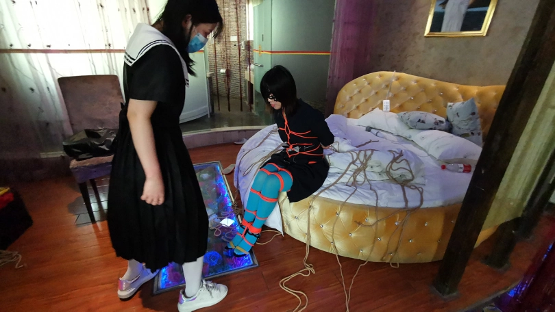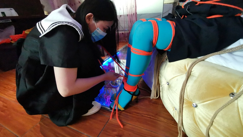 琳洛还是比较有绳师和女王的潜质的,这次让凌熙来当小白鼠,全程几乎都是琳洛一人捆绑,手法比较娴熟了。将凌熙全身捆绑后,拿出快感棒对准凌熙的下面敏感部位就是一阵强攻。手也不老实的在凌熙身上游走,不断的挑逗着凌熙。凌熙哪招架的住这么强烈的攻势,不断的呻吟挣扎,最后下面终于。。。