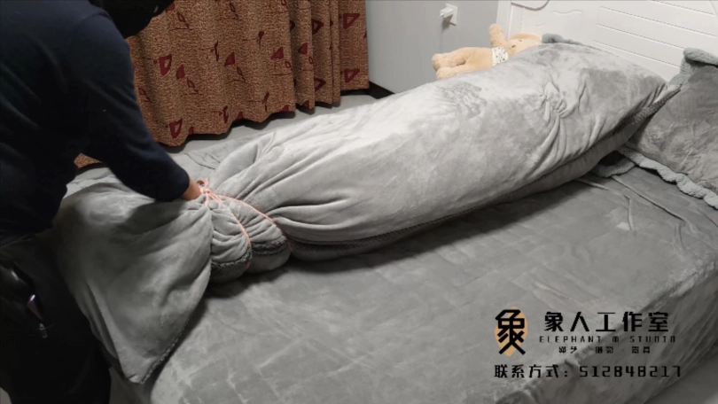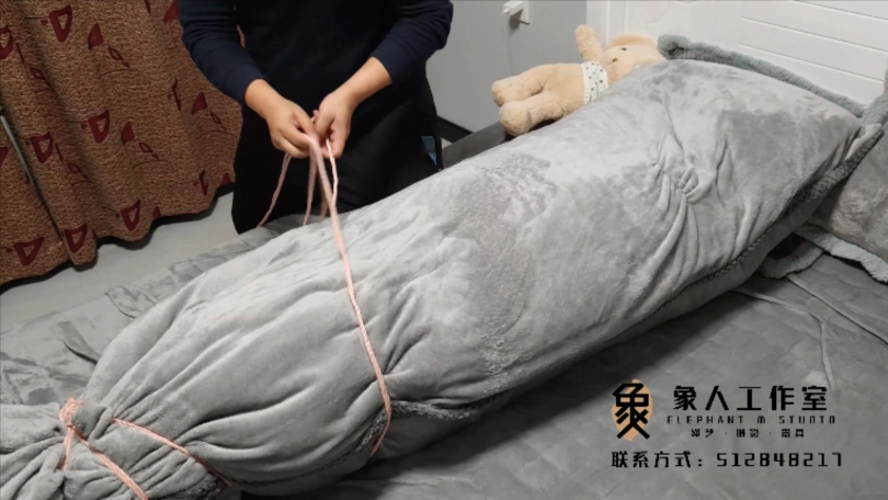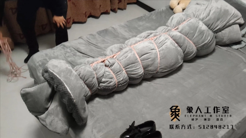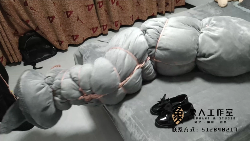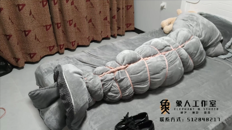 【象人】01小秋-红色JK+黑色网袜+小皮鞋+全身紧缚+被子全包+指挥动作(艰难蠕动)
