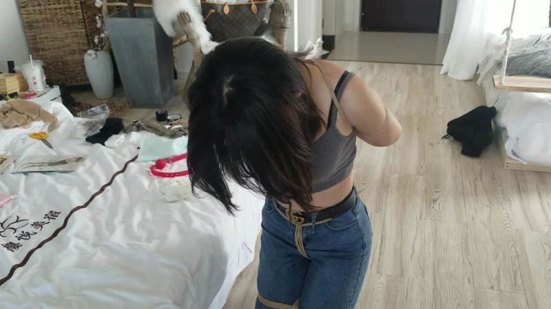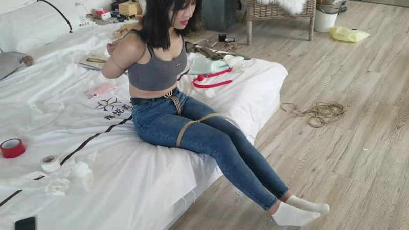 【绳师奥特曼】空姐梦怡牛仔裤捆绑各种严密堵嘴(上) 丝袜堵嘴、原味白袜+口球封堵、毛巾+口球封堵