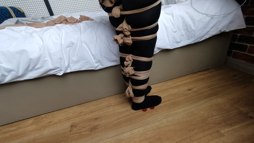 【JS】琳洛-黑丝连体衣,全身连裤袜紧缚 蒙堵