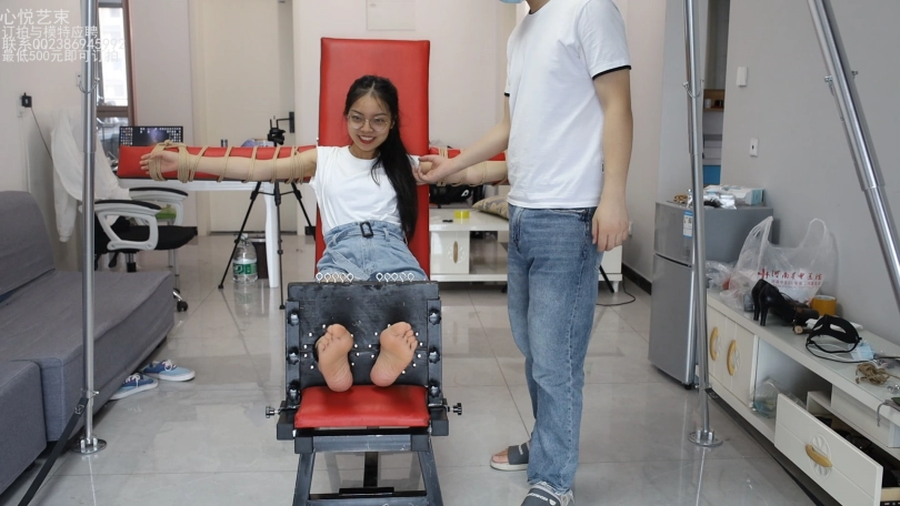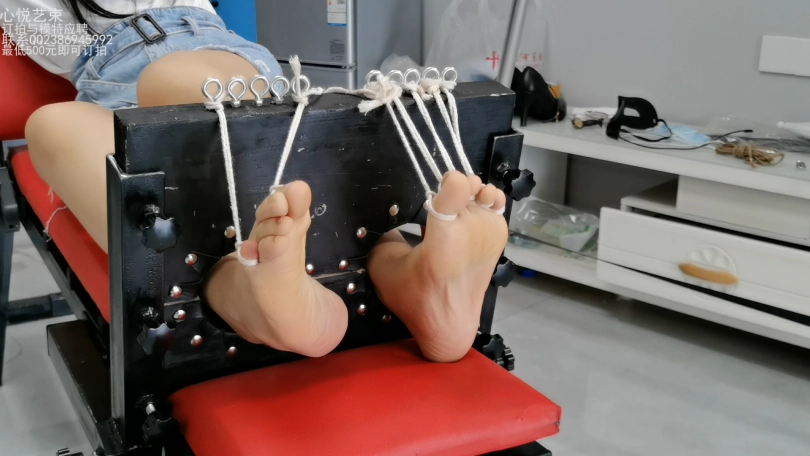 身着牛仔热裤白衬衫的青春少女欣然,被某知名恶人抓到,捆绑在了某恶人设计定制的老虎凳上面,每一根手指脚趾都被绳索束缚起来,完全没有挣扎的余地。接下来迎接她的是什么呢?当然是酷刑的折磨。