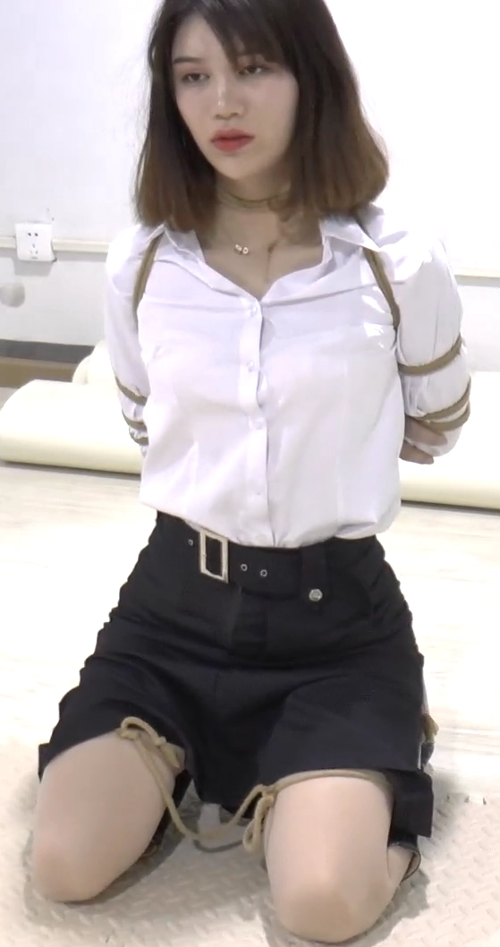 网红美女林萌。颜值绝对没的说。迷离的眼神,性感的大长腿,穿上白衬衣,黑裙子,长筒靴子,再配上五花大绑,太漂亮了。