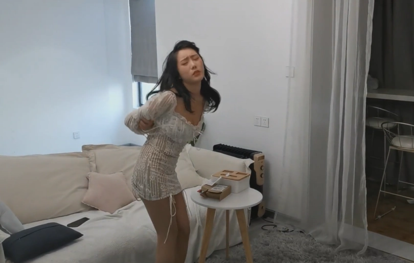 梦怡是一名在校大学生。寒假漫长的假期让她心生厌烦,但寒冷的冬天又让她打消搬砖的念头。这天,能在正在家看电视,一阵急促的敲门声响起,梦怡打开房门后,并没有看到人,但是地上却有一个包裹。回到家里,梦怡打开包裹。发现里面有几颗糖,和一张说明书,上面写着:梦怡小姐,你好。我们是逃脱实验工作室,这是我们的新产品“束缚糖果”,现诚邀您担当本产品的体验官。使用方法是,每个糖果都藏着一种不同的束缚方式,您只需要吃下糖果,就会被相应的束缚方式捆绑起来。30分钟后,束缚会自动消失,在此期间,您可使用任何您能想到的方法逃脱,成功逃脱,我们会有丰厚奖励哦。 (画外音:捆绑逃脱?丰厚奖励?感觉还怪刺激的,反正在家也没事,不如尝试一下,看看能把握捆成什么样子。那就先来试试这个日式蛇缚加口球堵嘴吧。看起来似乎简单一点,先从简单的开始~)梦怡,打开糖果的包装,吃下糖果。