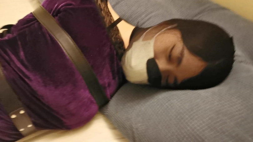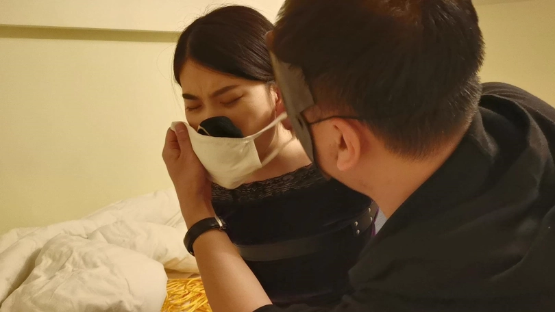性感的睡衣,油量丝袜。束缚带驷马束缚。棉袜堵嘴封鼻,口罩固定,丝袜套头。挠痒,最后将房间灯关掉,对她说,晚上就留她一人在这,这房间之前出过事,原来的房主已经。。。小冷真害怕了,不断的呜呜叫,用力挣扎想挣脱束缚。但我还是关上了房门离开,留下她自己体验恐惧放置。